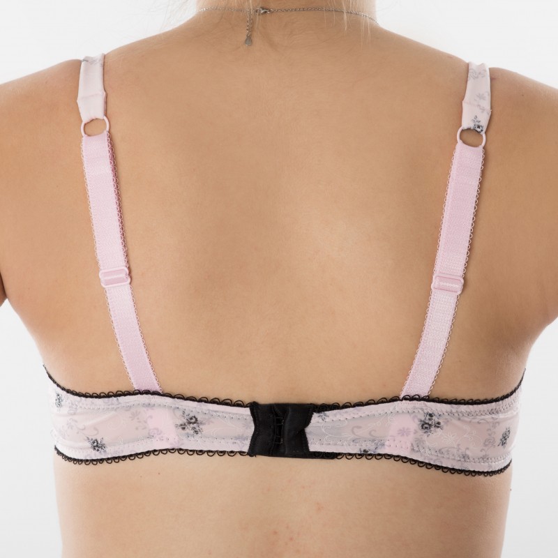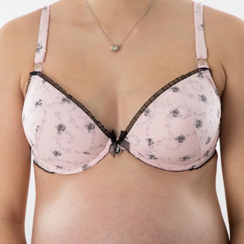 Le soutien-gorge de maternité Joséphine avec armatures souples spéciales maternité est réalisé avec du tissu microfibre rose imprimé floral noir. La poitrine sera mise en valeur grâce à la coupe décolleté plongeant. Au centre se trouve un petit nœud noir complété d'un petit médaillon. Les bonnets sont finement rembourrés pour un meilleur maintien. Le soutien-gorge Joséphine est très doux grâce aux coutures plates et doublure en coton à l'intérieur du bonnet. Les bretelles permettent l'allaitement confortable grâce aux clips d'allaitement faciles à ouvrir d'une seule main.