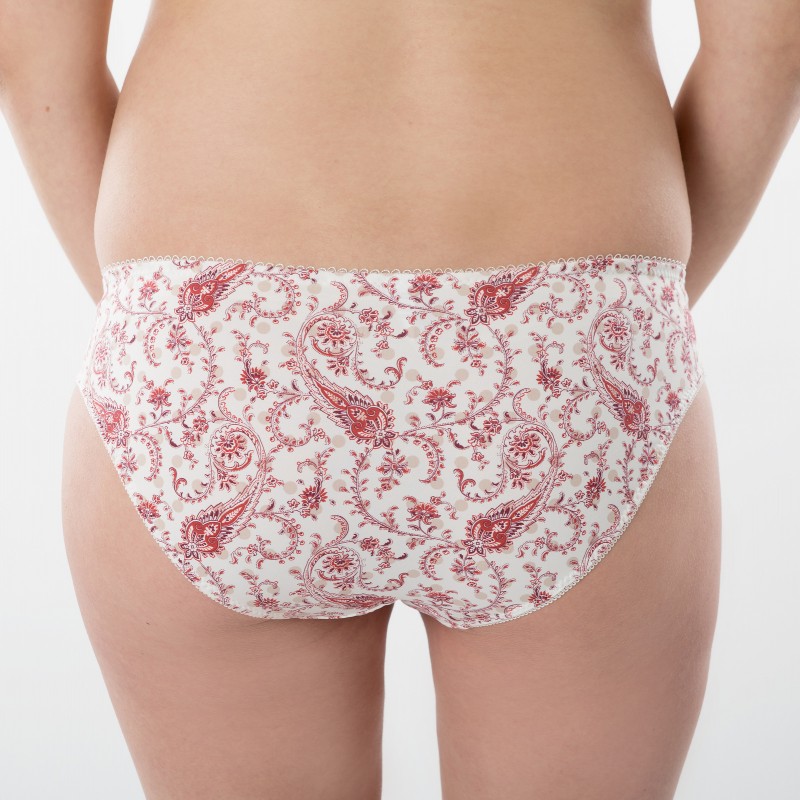 La culotte de maternité Emma représente fièrement la femme enceinte avec son soutien-gorge d'allaitement dans une allure colorée et très raffinée. Les détails très recherchés et travaillés sous toutes les formes donnent un rendu admiratif de la femme enceinte dans cet ensemble riche. La partie basse de la culotte est doublé de coton bio pour un meilleur confort.